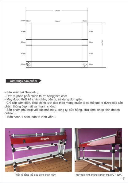 Trong hình là Máy tạo thùng carton QM-80 nhãn hiệu bangghim.com khổ rộng máy 85cm